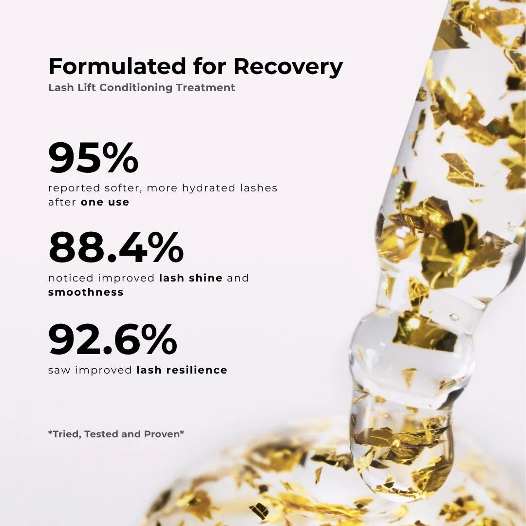 超保濕睫毛提升精華液, 能夠深層滋潤並滋養睫毛,蘊含 24K 黃金,打造奢華妝效。蘊含玻尿酸鈉,可瞬間豐盈睫毛,讓睫毛倍感柔順。這款精華液是我們睫毛提升護理雙重套裝的第一步。